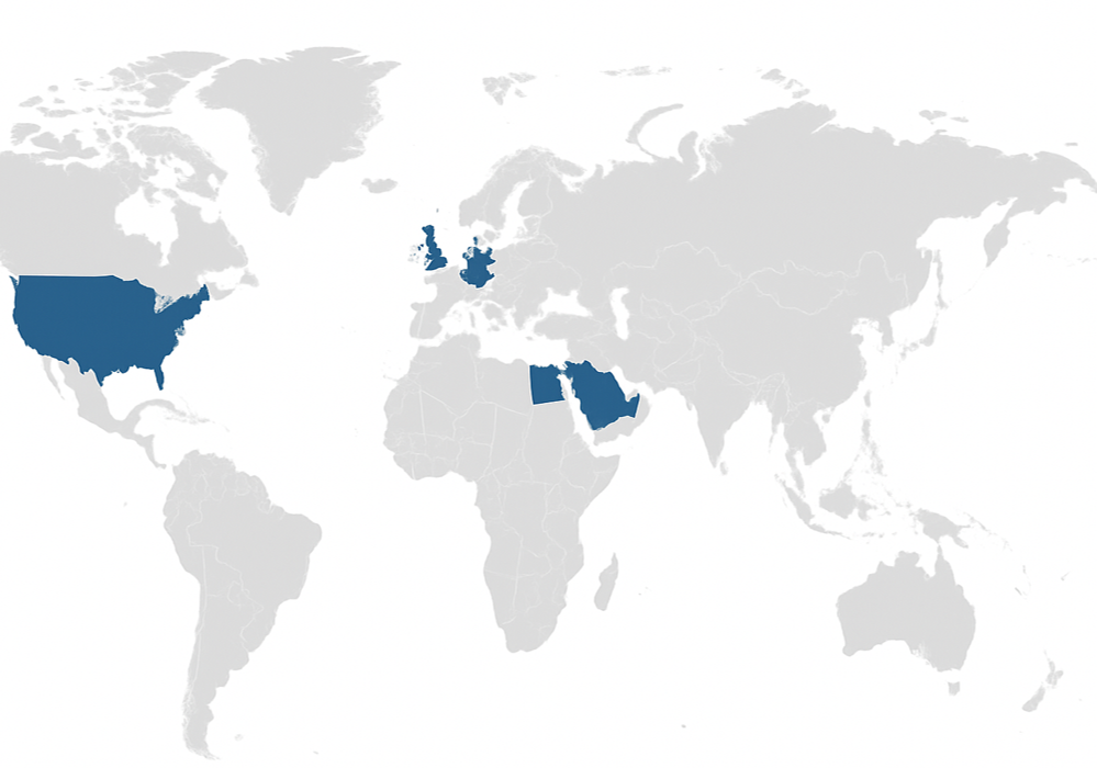 including KSA, Qatar, Egypt, Mauritius, Germany, United